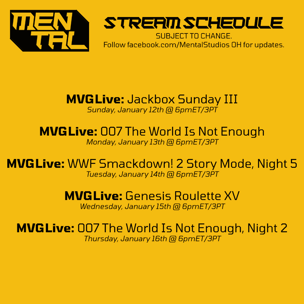 Schedule Week of 12 Jan 2020