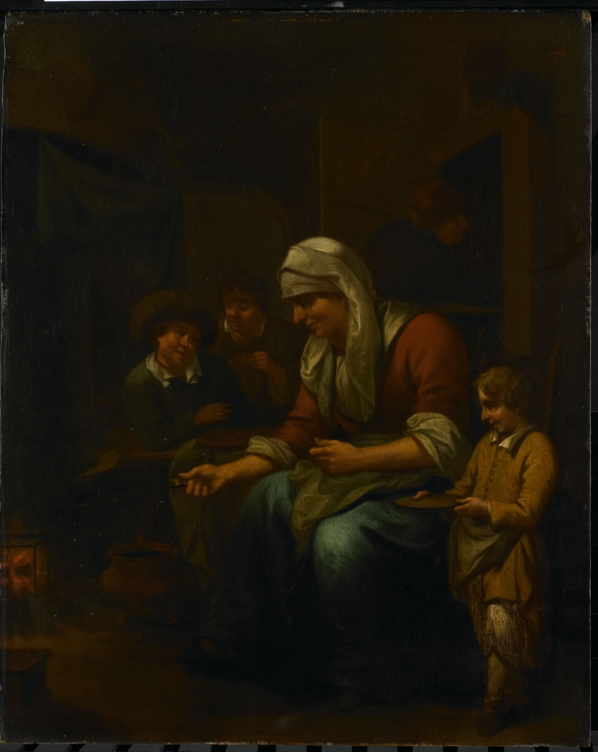 Schijndel, Bernardus van Стряпает блины, 1709, 48 cm х 39 cm, Дерево, масло