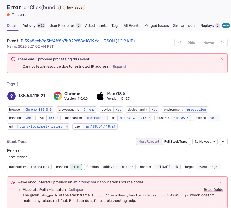 Check the error report for more information.
