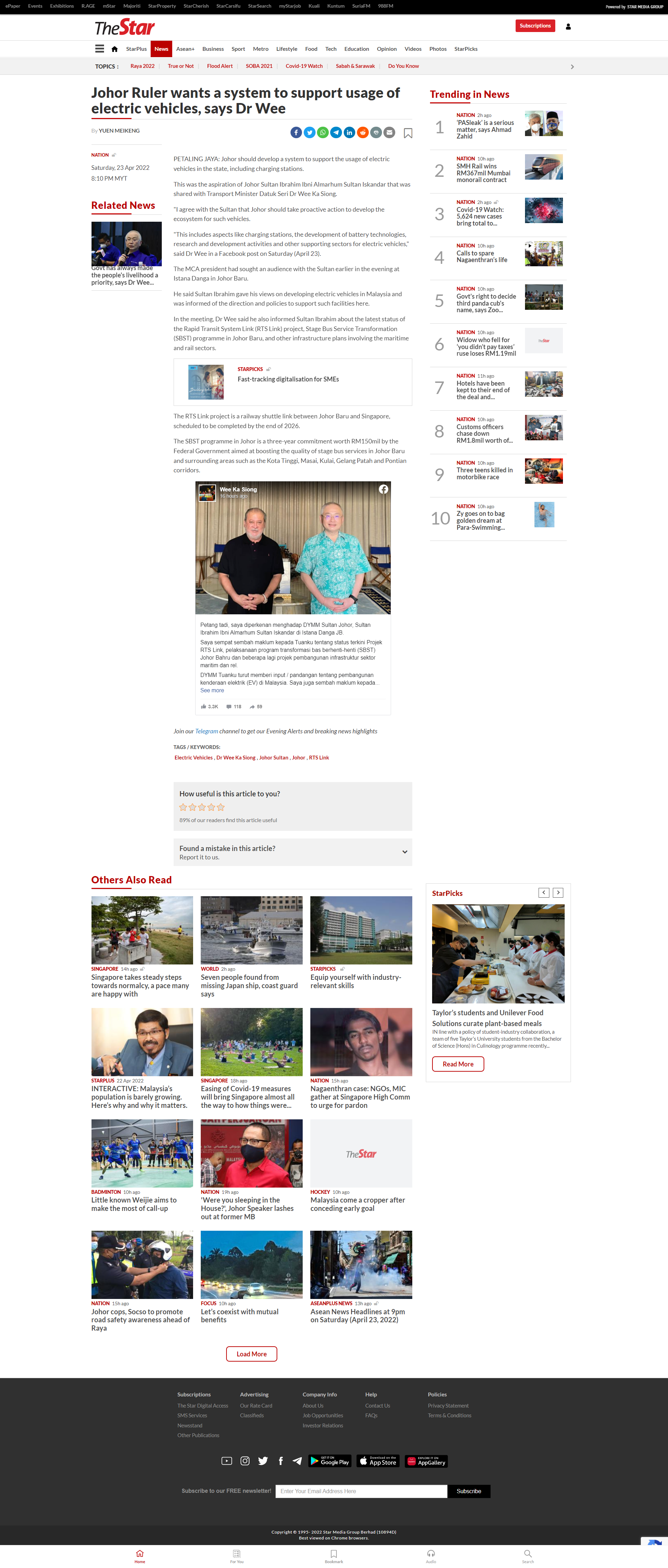 screencapture thestar my news nation 2022 04 23 johor ruler wants a system to support usage of elect