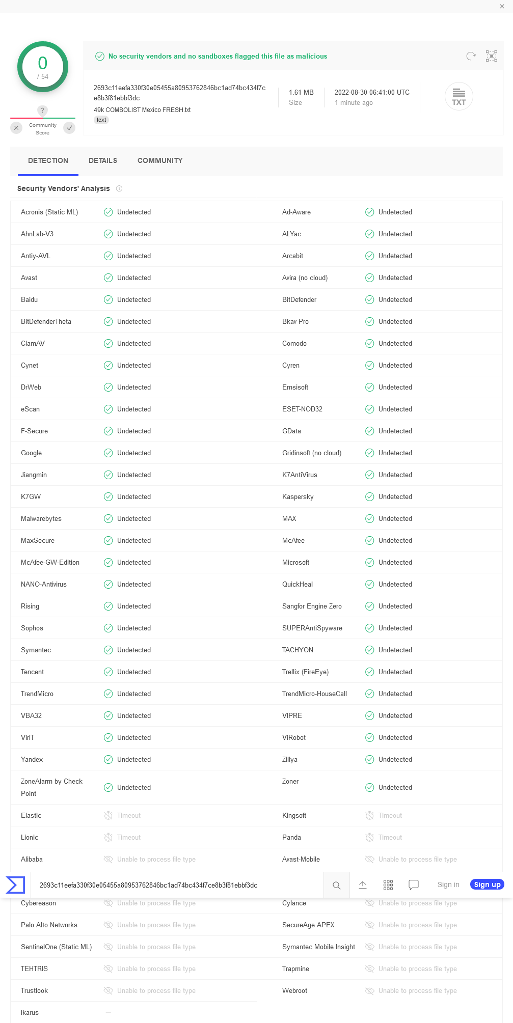 Screenshot 2022 08 30 at 14 48 12 VirusTotal File 2693c11eefa330f30e05455a80953762846bc1ad74bc434f7c
