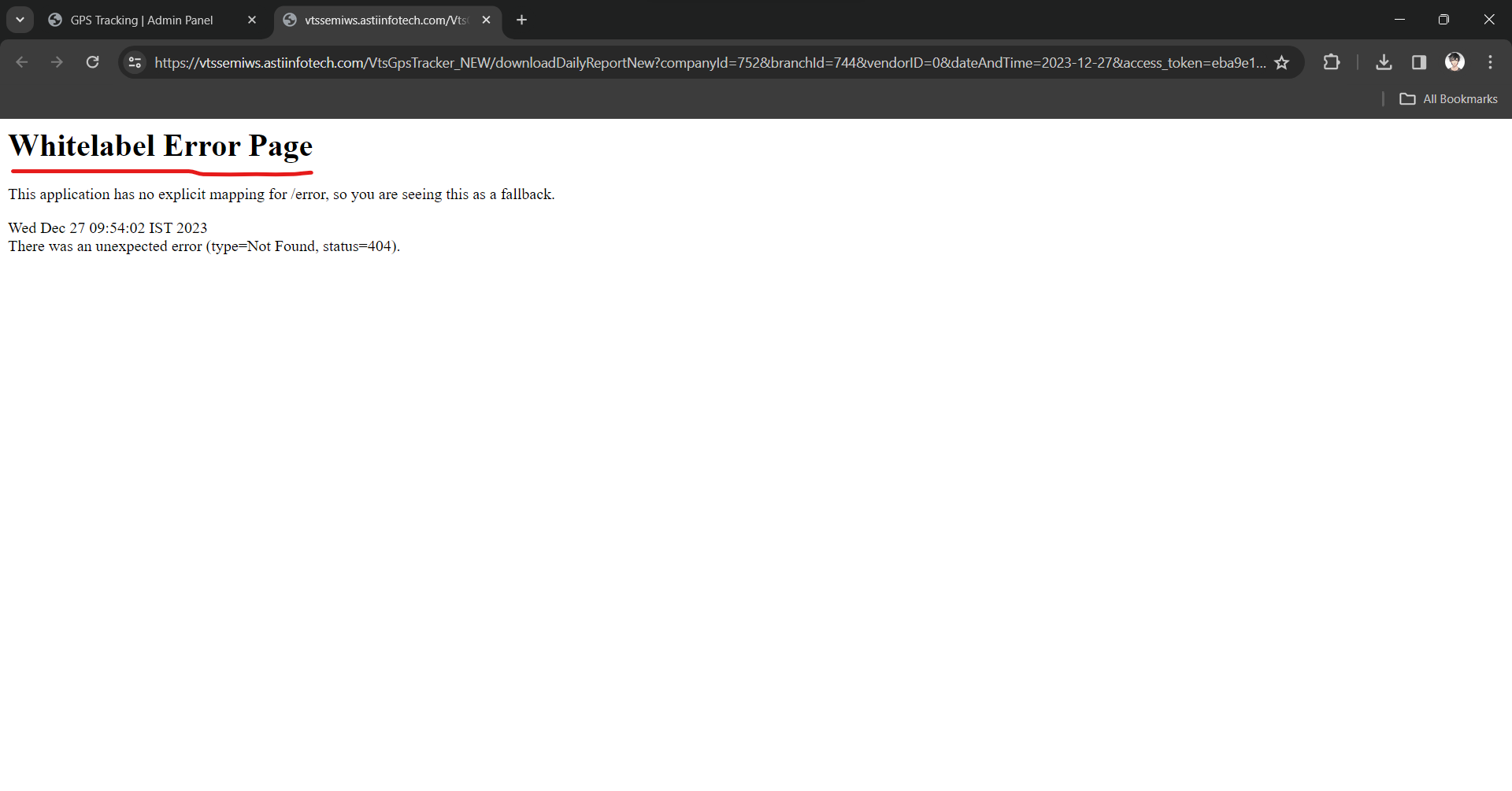 Some errors have occured and the system couldn't process your request.