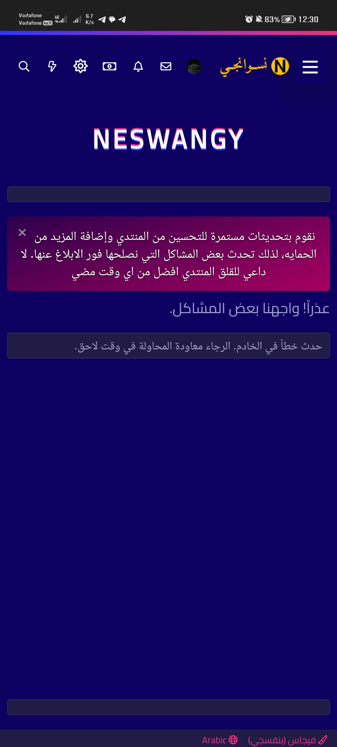 Some errors have occured and the system couldn't process your request.