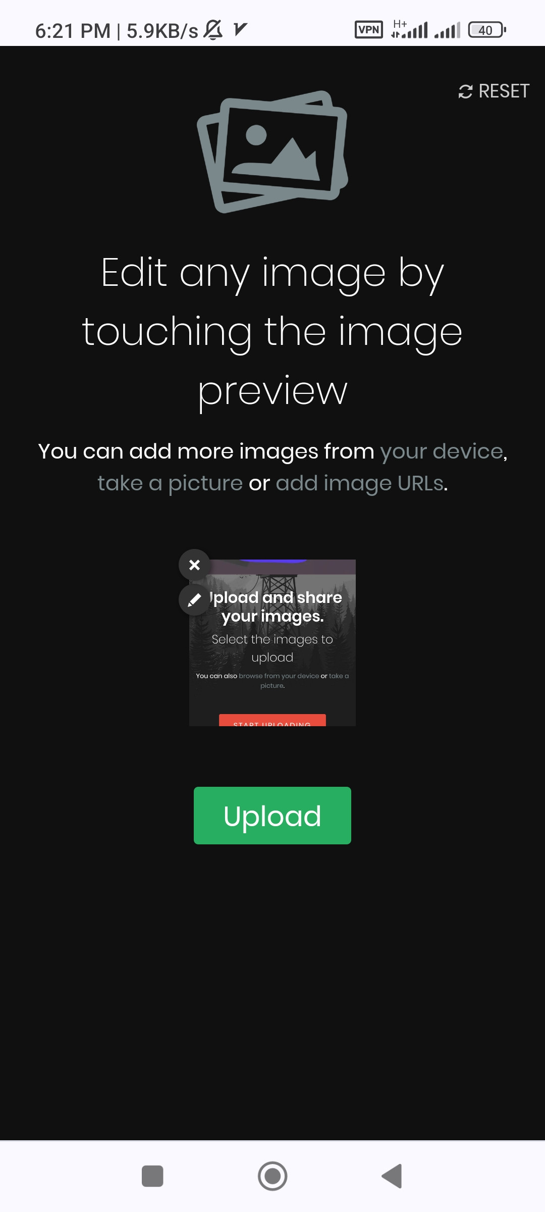 Edit any image by touching the image preview