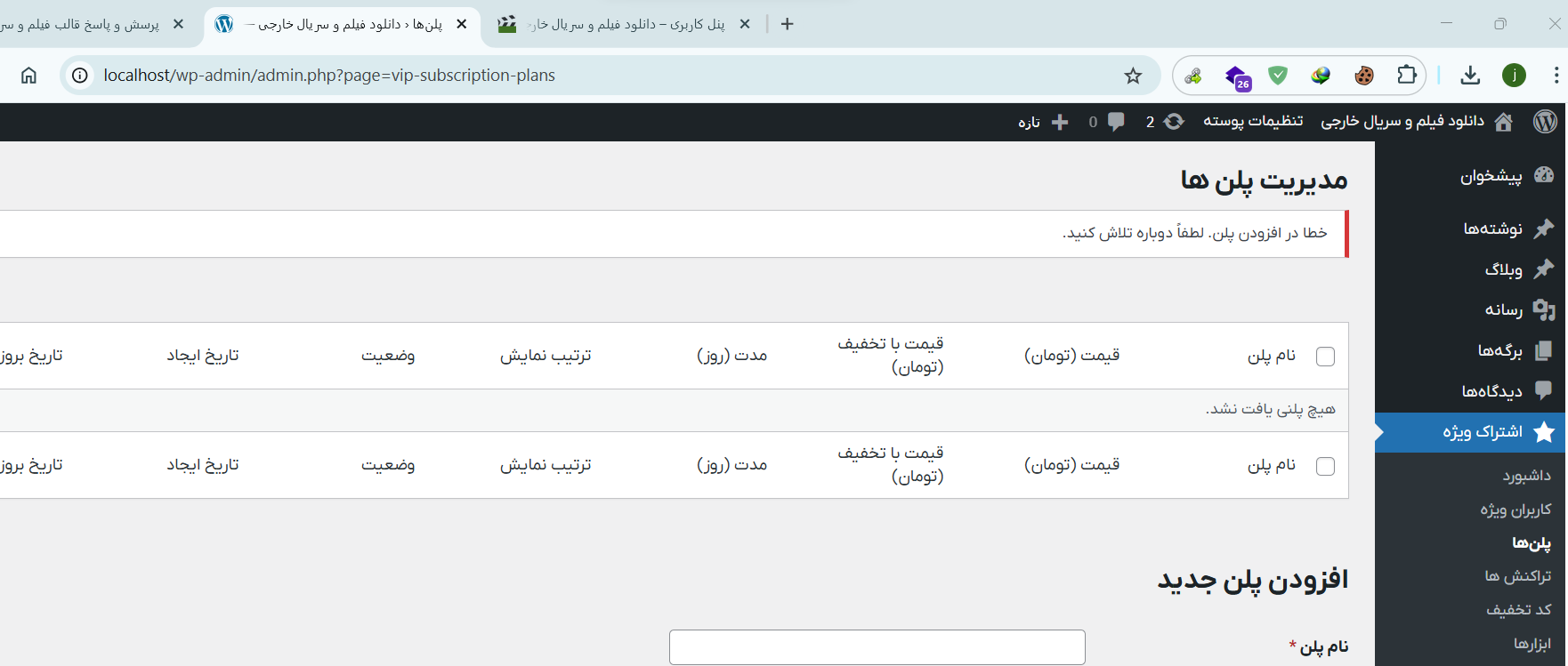 Some errors have occured and the system couldn't process your request.