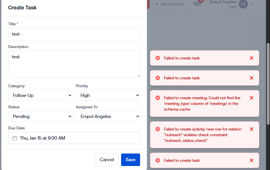 Some errors have occured and the system couldn't process your request.