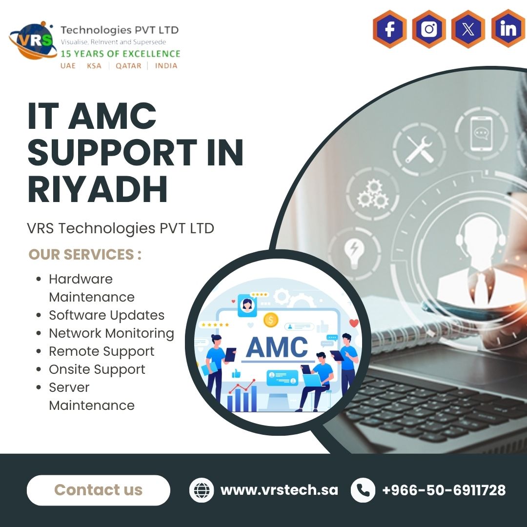 Ensure seamless business operations with VRS Technologies, offering IT AMC Support in Riyadh that includes proactive maintenance and 24/7 monitoring. Our expert team prevents downtime, boosts performance, and secures your IT infrastructure. Call +966-50-6911728 for reliable support today!
