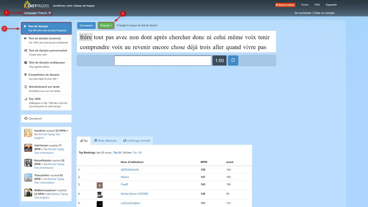 selectionner la langue 10FastFingers