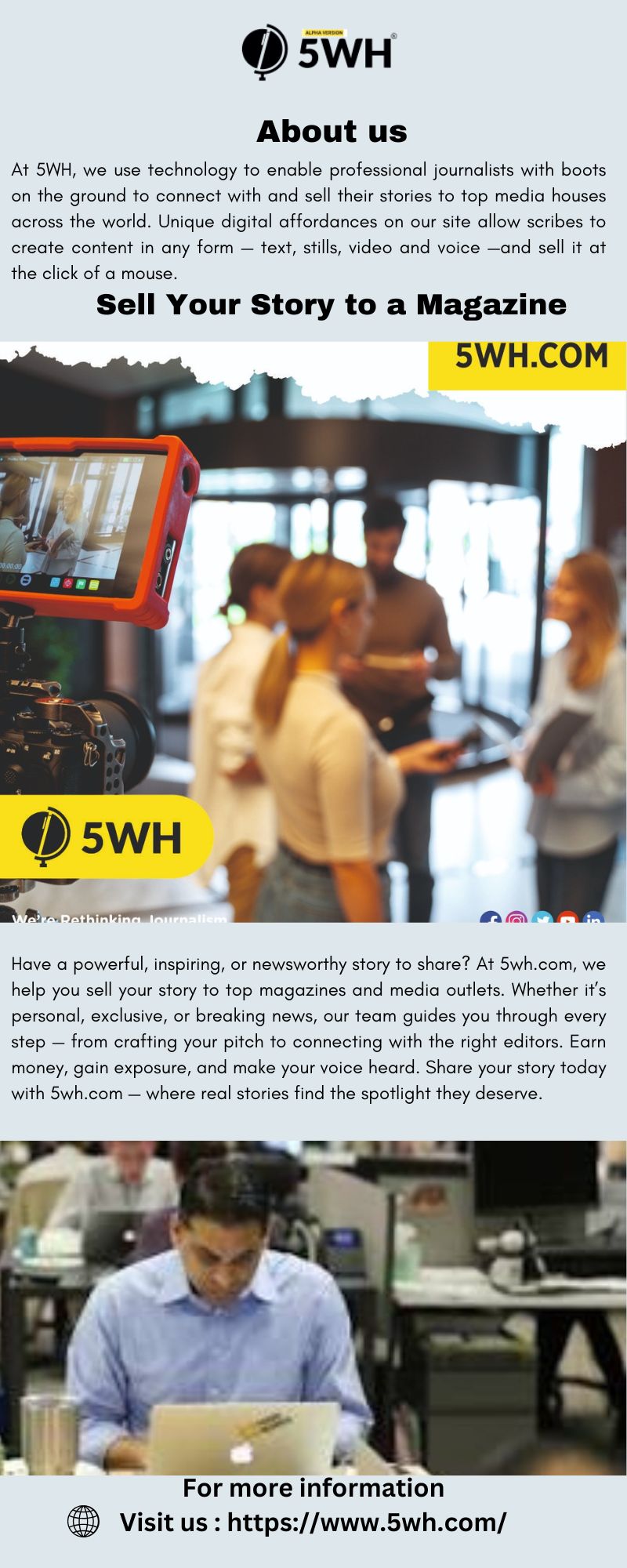 Have a powerful personal story, exclusive experience, or unique insight? At 5wh.com, we help you sell your story to top magazines and media outlets. Whether it’s emotional, inspiring, shocking, or newsworthy, we connect real people with real publishers. Our team ensures your story reaches the right audience—and you get the recognition or payment you deserve. Share your truth today with 5wh.com and let your voice be heard nationwide. Submit your story now!