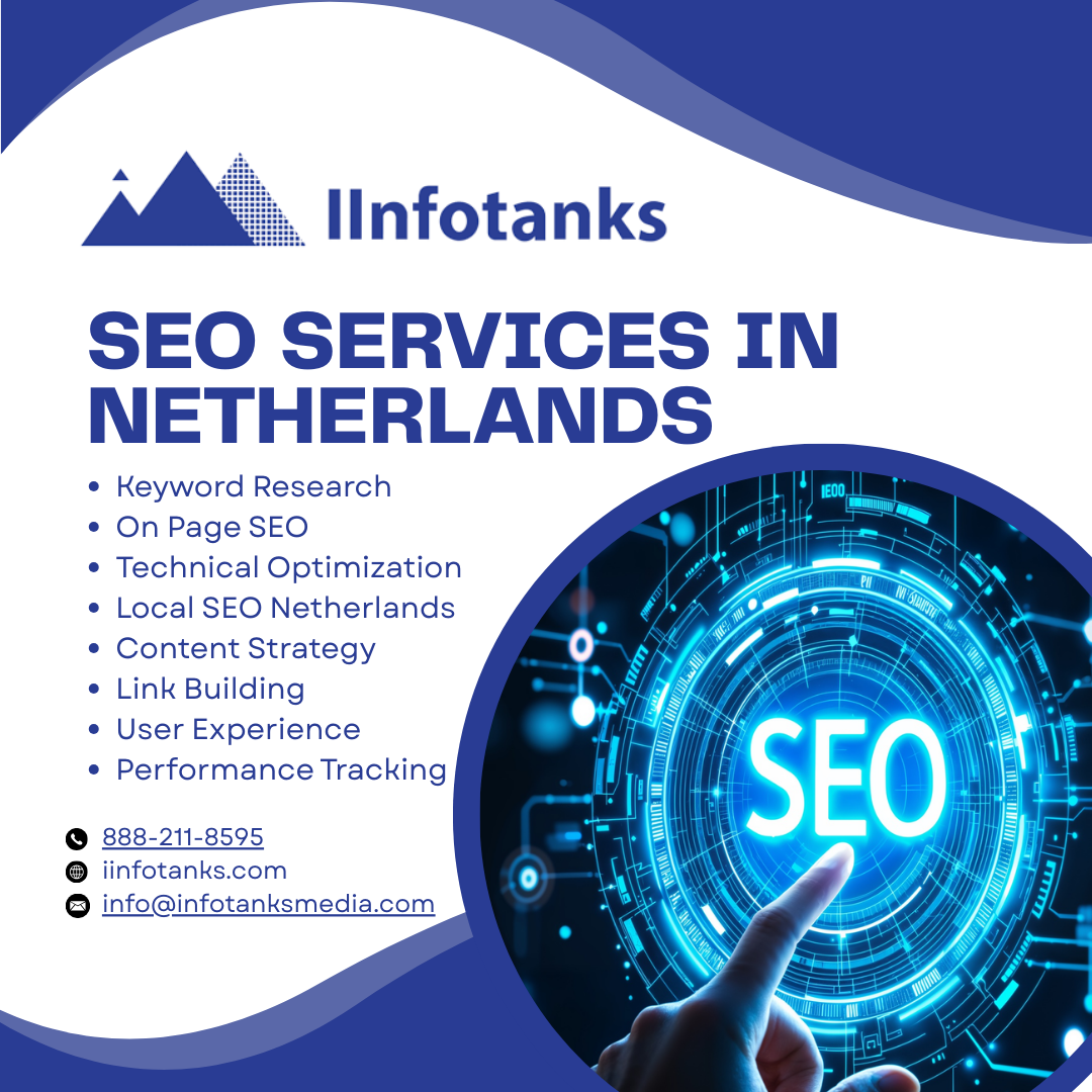IInfotanks provides professional SEO Services In Netherlands to help businesses improve online visibility and attract the right audience. Our data driven strategies include detailed keyword research, on page optimization, and technical SEO to enhance search rankings and website performance. We focus on local search optimization to connect your brand with customers across the Netherlands while supporting international reach. From high quality content creation to authoritative link building and continuous monitoring, every campaign is tailored to your business goals. With IInfotanks, companies gain increased organic traffic, better engagement, and sustainable digital growth in the competitive Dutch online market.