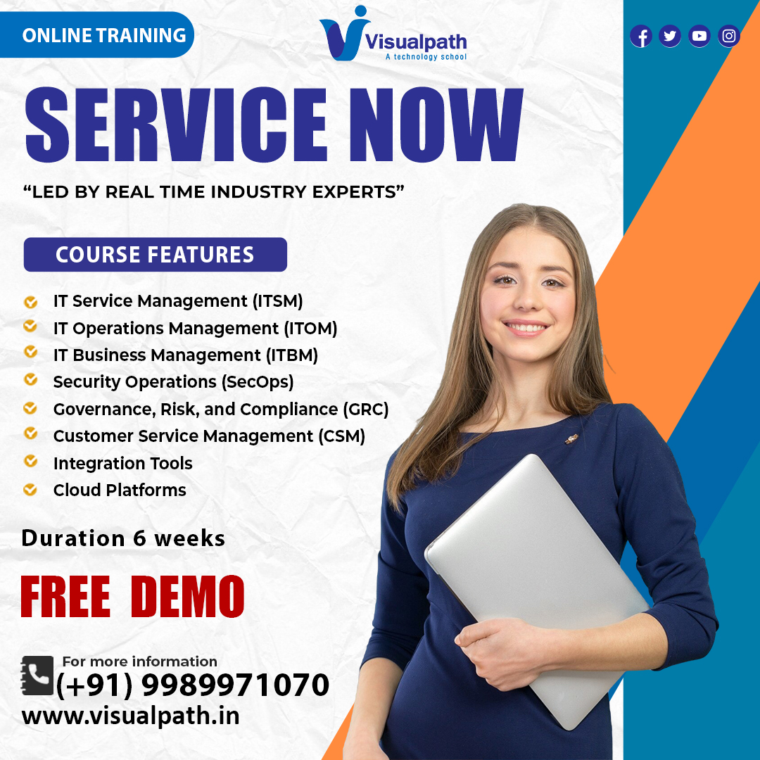 Get the best ServiceNow Training at VisualPath in Ameerpet. Master ServiceNow with hands-on projects and expert guidance. Flexible online classes with session backups for easy learning. Build job-ready skills with career-focused assignments—access training from the USA, UK, Canada, Dubai & Australia. Call +91-7032290546 now for a free demo and enrollment!