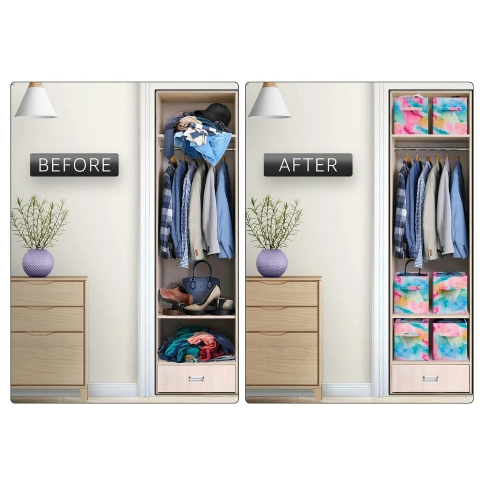 Set of 6 Colorful Cube Storage Bins Foldable Collapsible Storage Box