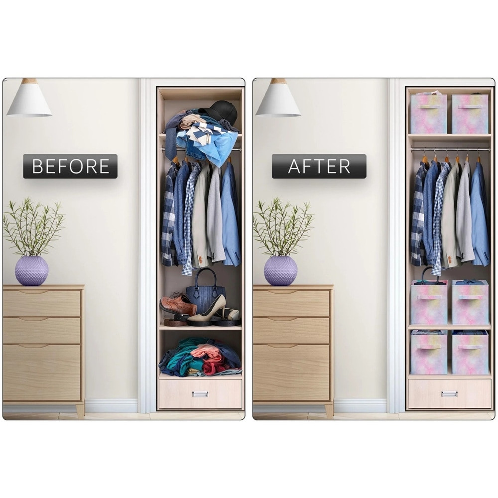 Set of 6 Colorful Cube Storage Bins Foldable Collapsible Storage Box