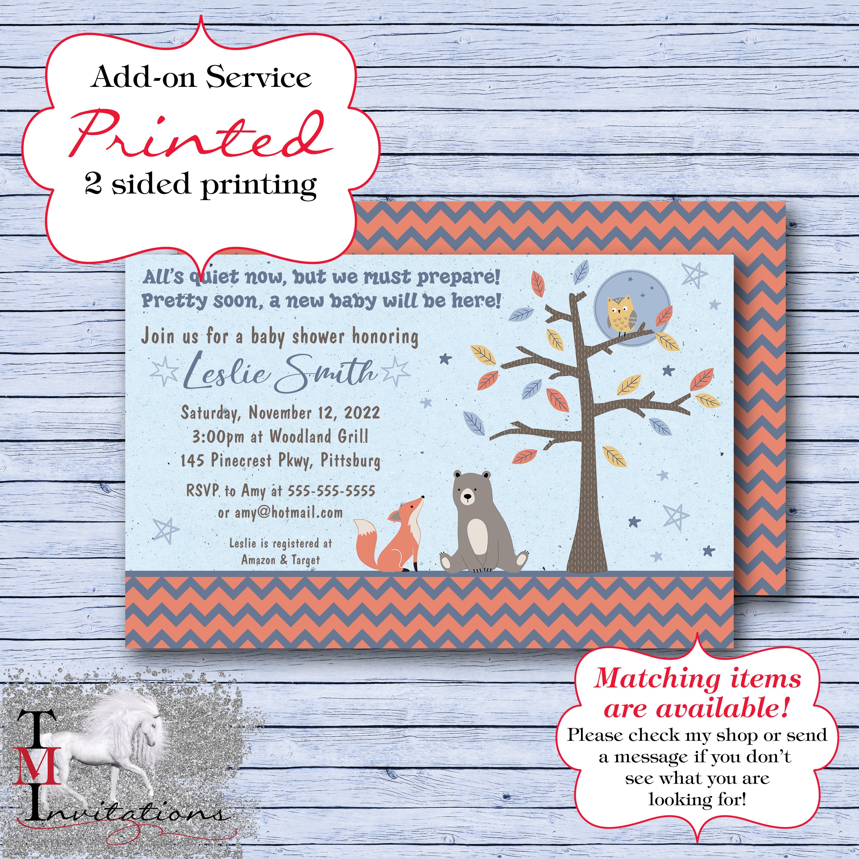 Sierra Sky Bear Fox Owl Tree Invite Printed