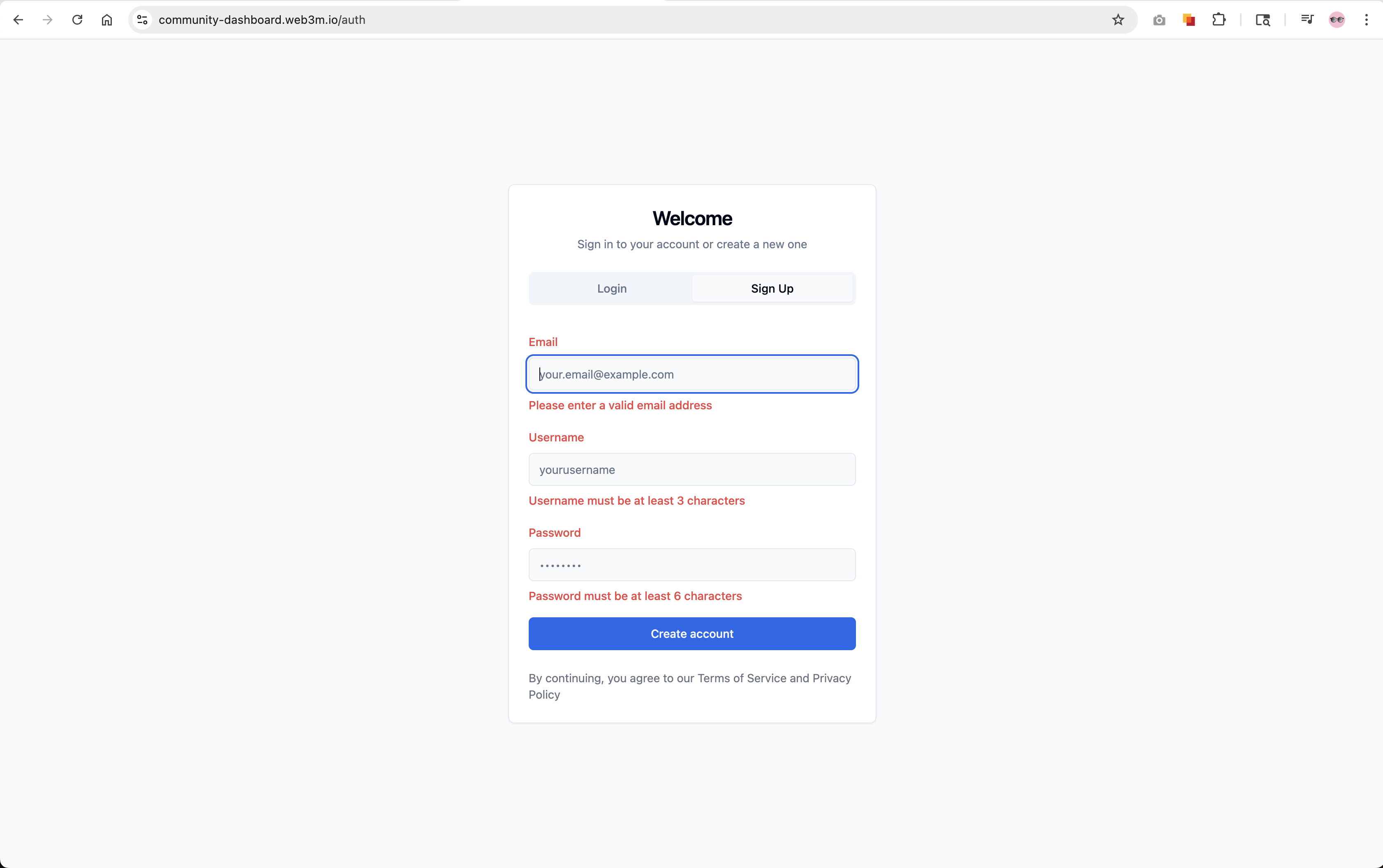 signUp error