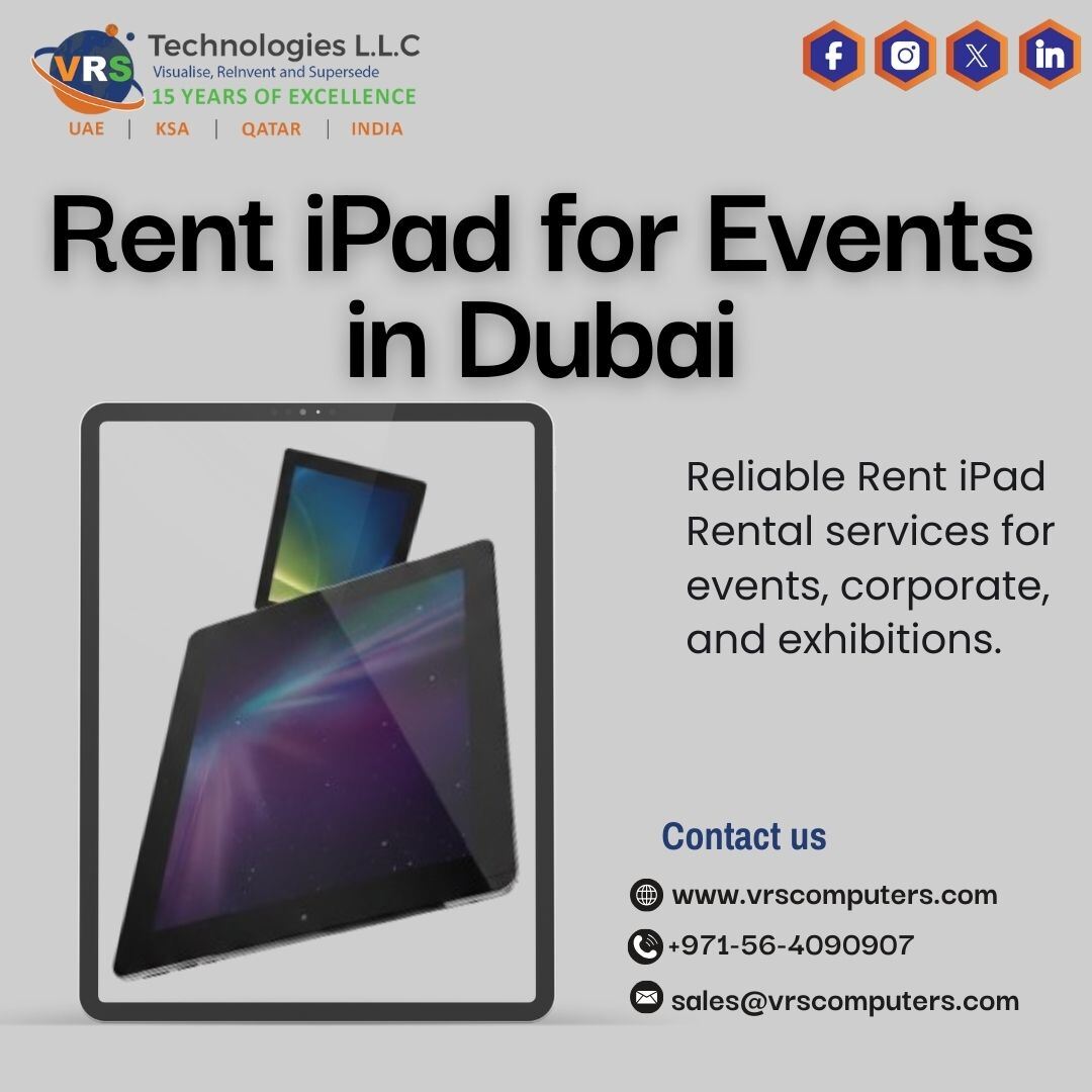 Event organizers rely on smooth digital tools for check-ins, presentations, and interaction across Dubai. Rent iPad for Events from VRS Technologies LLC offers dependable devices and flexible plans. Contact +971564090907.