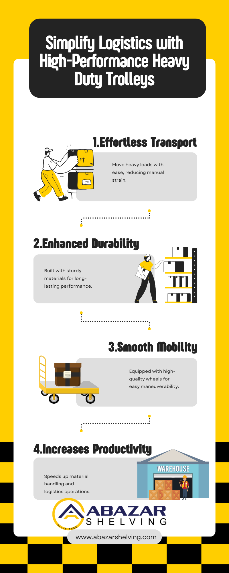 A heavy-duty trolley makes transporting goods easy and efficient. With robust construction and smooth maneuverability, it enhances warehouse and industrial productivity. Discover the best heavy-duty trolleys from Abazar Shelving and upgrade your logistics operations now! 🚛
