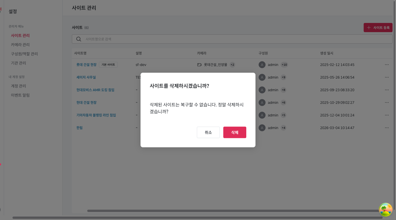 site delete dialog after