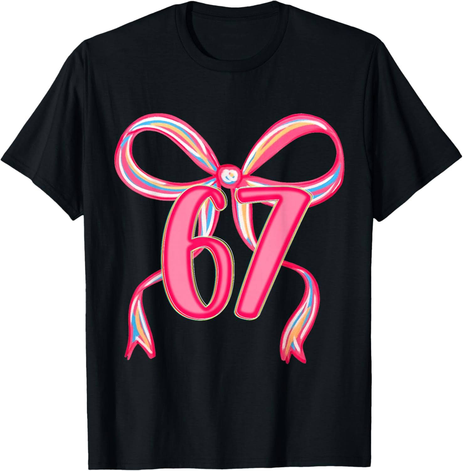 Six Seven Coquette Girl Bow Cool Meme 67 Funny Number Slang T Shirt productor mockup (3)