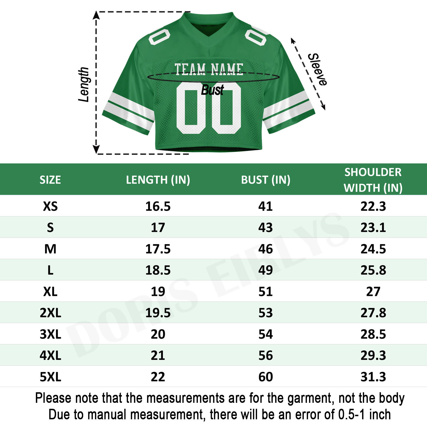 size chart crop top football tm9