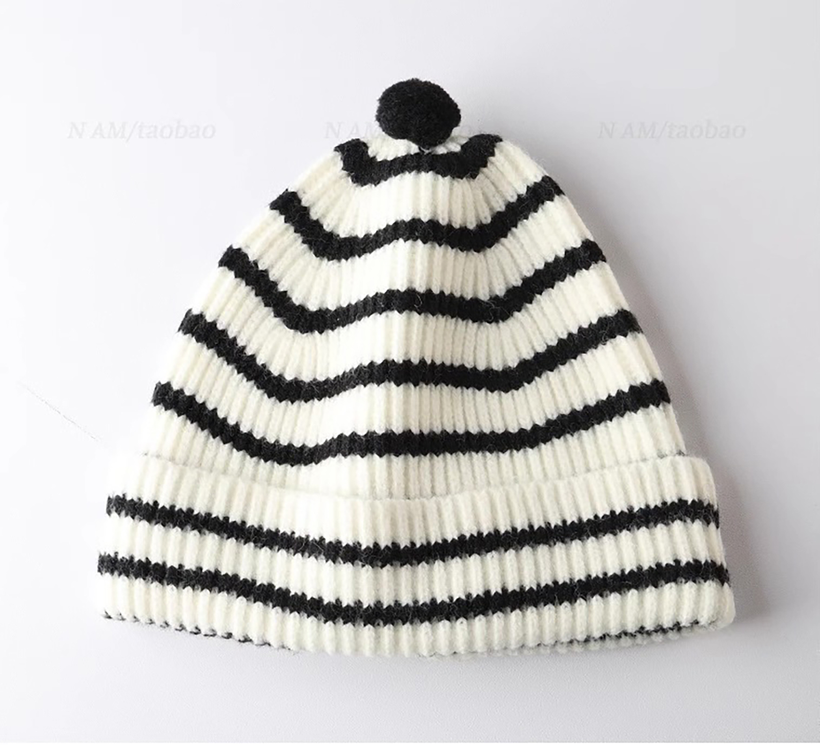 SKU 01 HB 小条纹毛线帽 白色