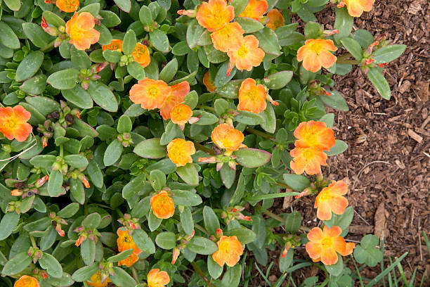 Small oange flowers of plant - Portulaca - Tangerine