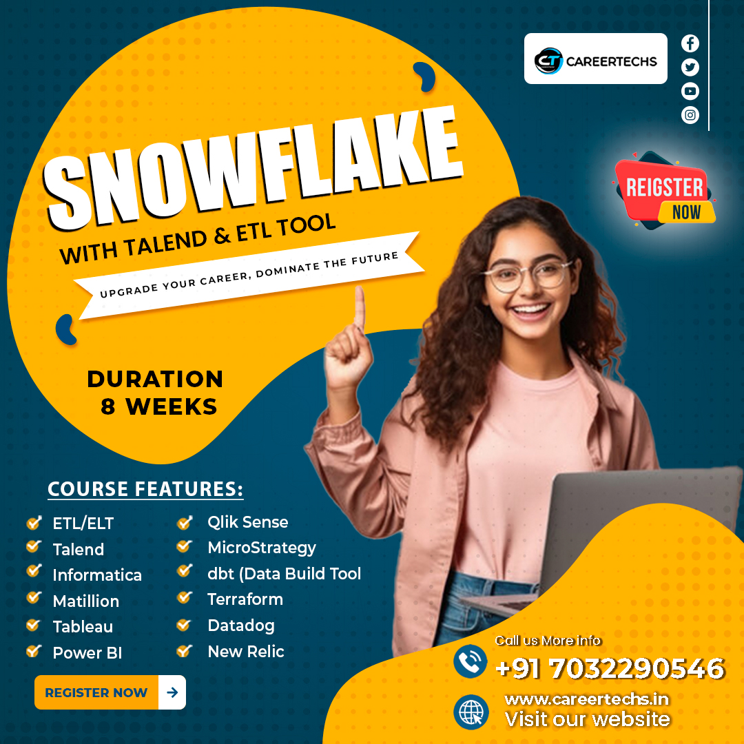 Careertechs is a top institute in Hyderabad offering Snowflake Online Training. With experienced, real-time trainers. We provide Snowflake Training in Ameerpet And real-time Projects with highly skilled and certified trainers and Individuals Globally in the USA, UK, Canada, etc. Contact us at +91-7032290546