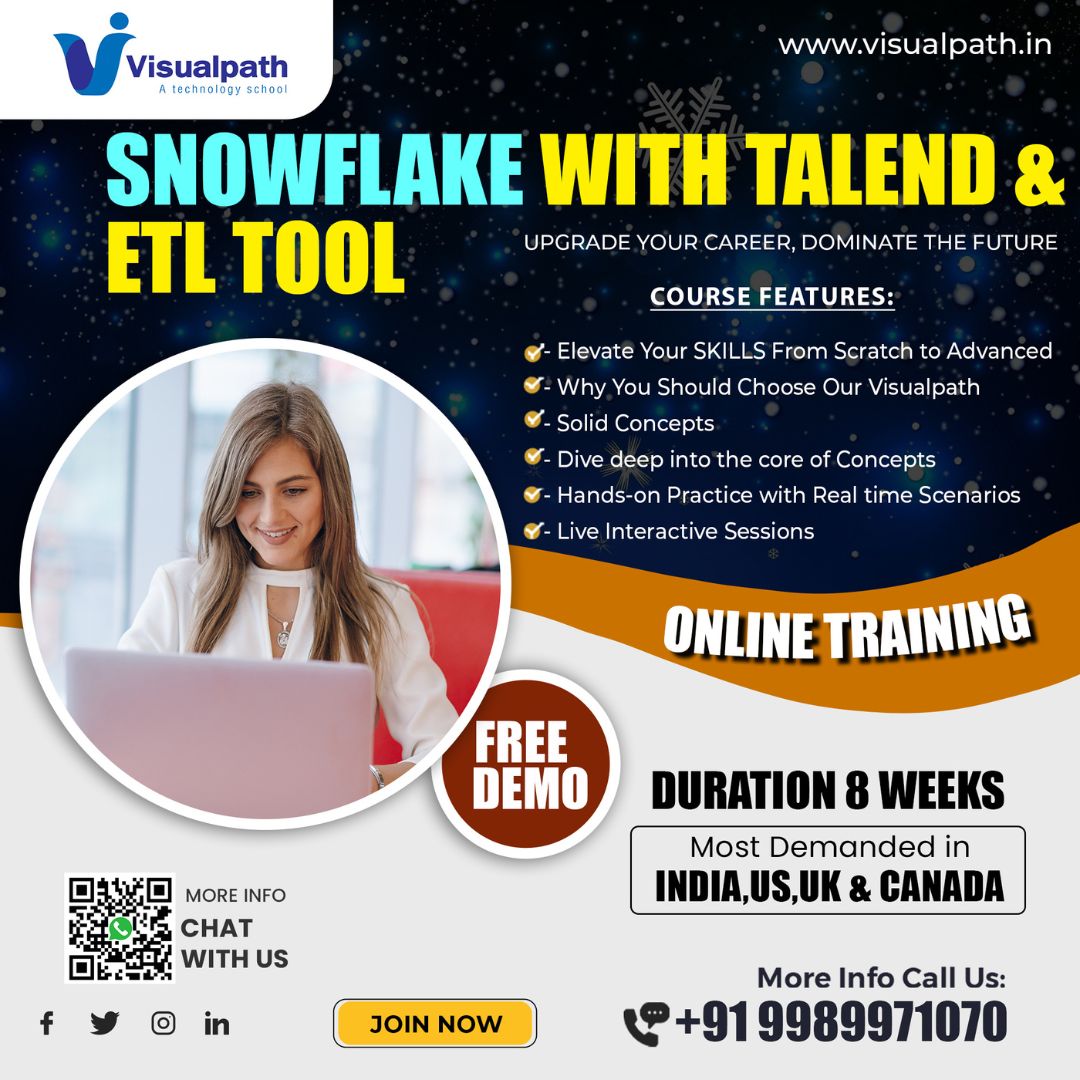 Snowflake Training in Ameerpet - VisualPath offers Snowflake Online training, a cloud-based data warehouse platform. Get hands-on Snowflake training in Hyderabad with experienced instructors. Find the best Snowflake training in Ameerpet, Hyderabad, with our expert-led courses. For more info Call us at +91-9989971070.