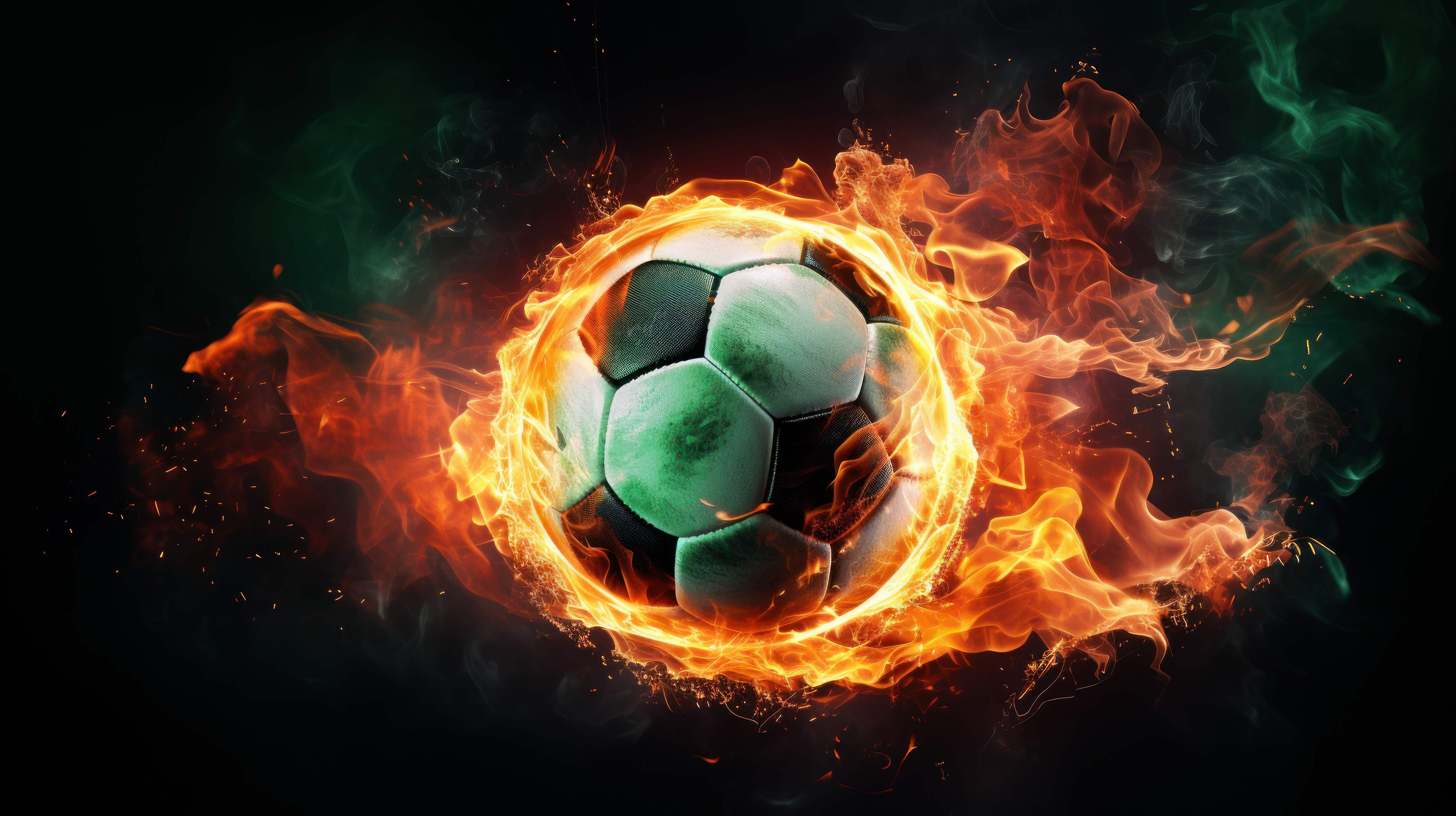Soccer Ball with green fire flame Football with fire flame minimalistic clean stockimage 00629 00