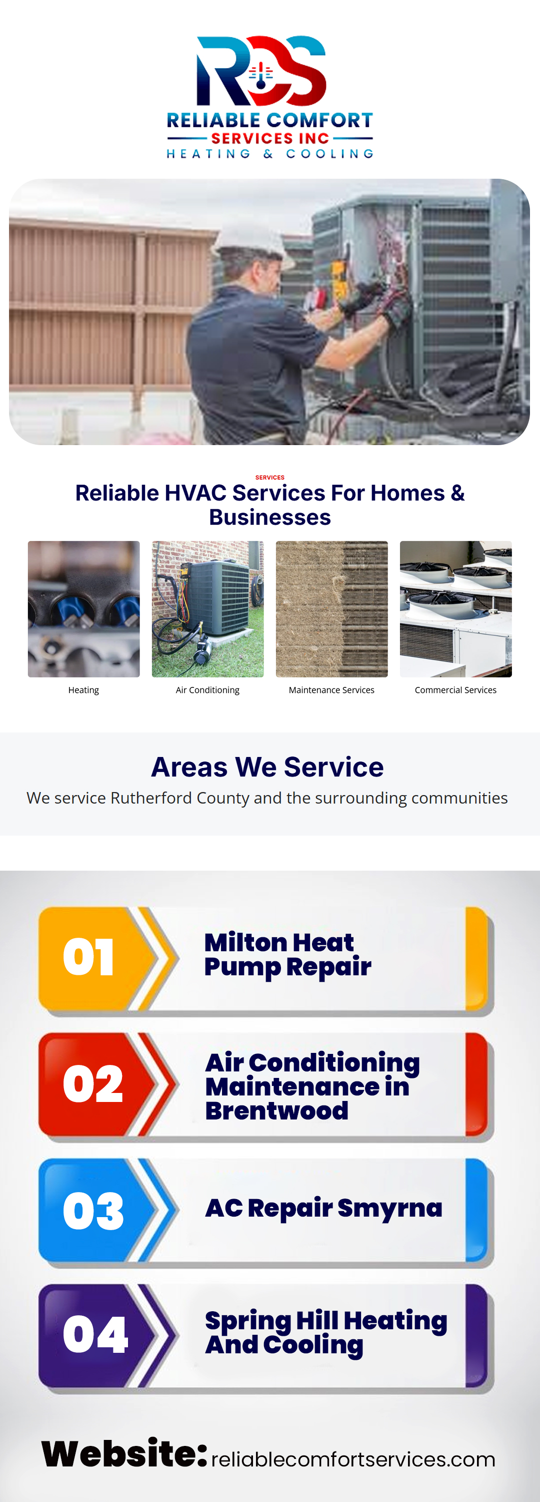 Reliable Comfort Services Inc delivers expert Spring Hill heating and cooling services. From HVAC installations to repairs, our team ensures year-round comfort for your home or business with energy-efficient solutions. For more information please visit: https://reliablecomfortservices.com/