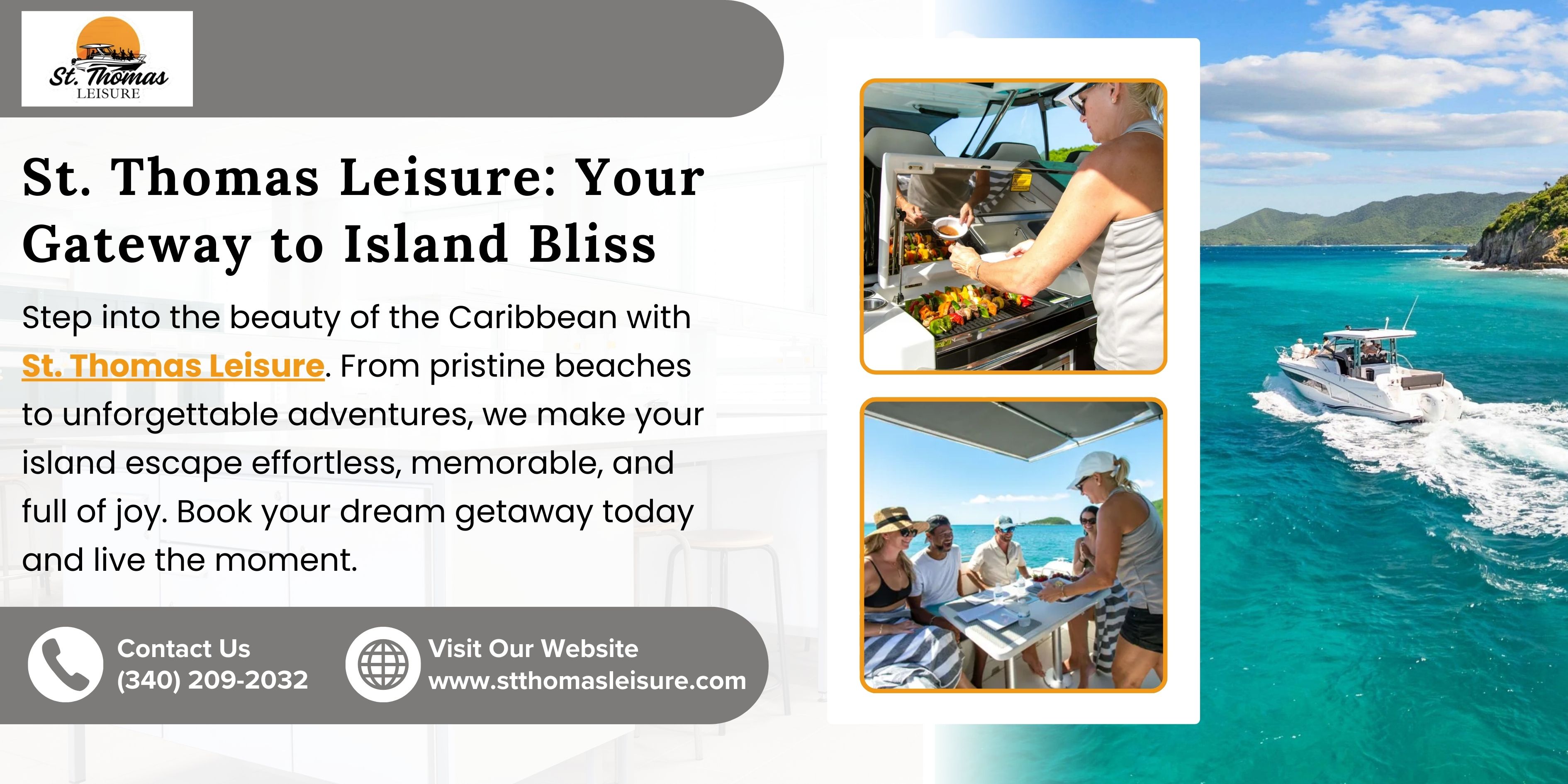 Step into the beauty of the Caribbean with St. Thomas Leisure. From pristine beaches to unforgettable adventures, we make your island escape effortless, memorable, and full of joy. Book your dream getaway today and live the moment.