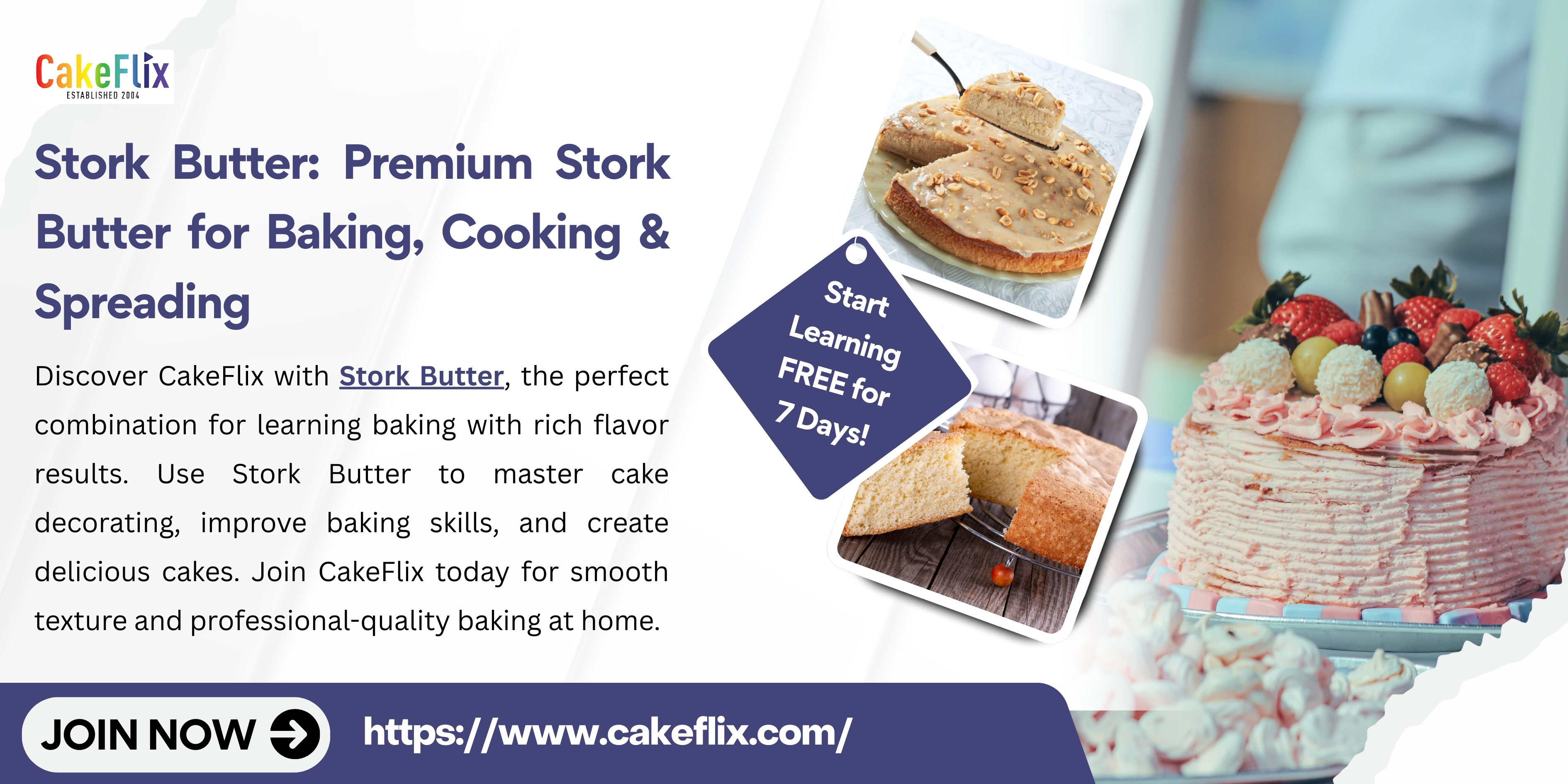 Discover CakeFlix with Stork Butter, the perfect combination for learning baking with rich flavor results. Use Stork Butter to master cake decorating, improve baking skills, and create delicious cakes. Join CakeFlix today for smooth texture and professional-quality baking at home.