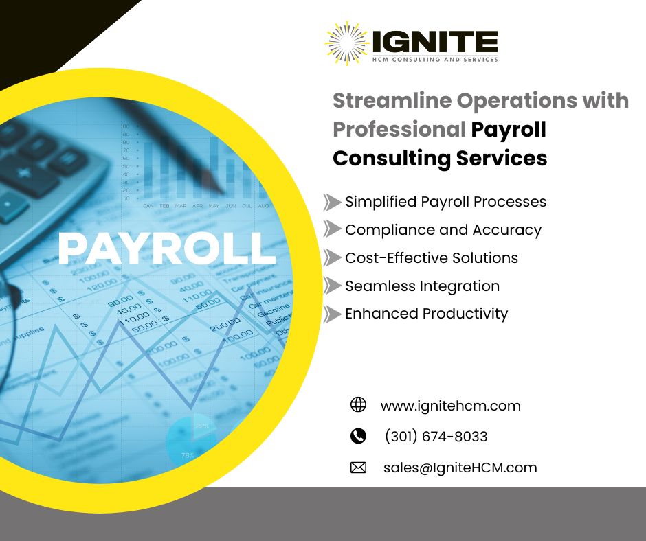 At Ignite HCM, our Payroll Consulting Services are designed to help businesses streamline payroll processes with accuracy, compliance, and efficiency. Our team of experienced payroll consultants provides expert guidance in system setup, optimization, and management to ensure seamless operations. We identify inefficiencies, implement best practices, and ensure adherence to all tax and labor regulations. With Ignite HCM’s Payroll Consulting Services, you gain reliable support, reduced errors, and improved payroll accuracy. Whether you need assistance with implementation, compliance, or process improvement, our tailored consulting solutions empower your business to achieve consistent, compliant, and stress-free payroll management every pay cycle.