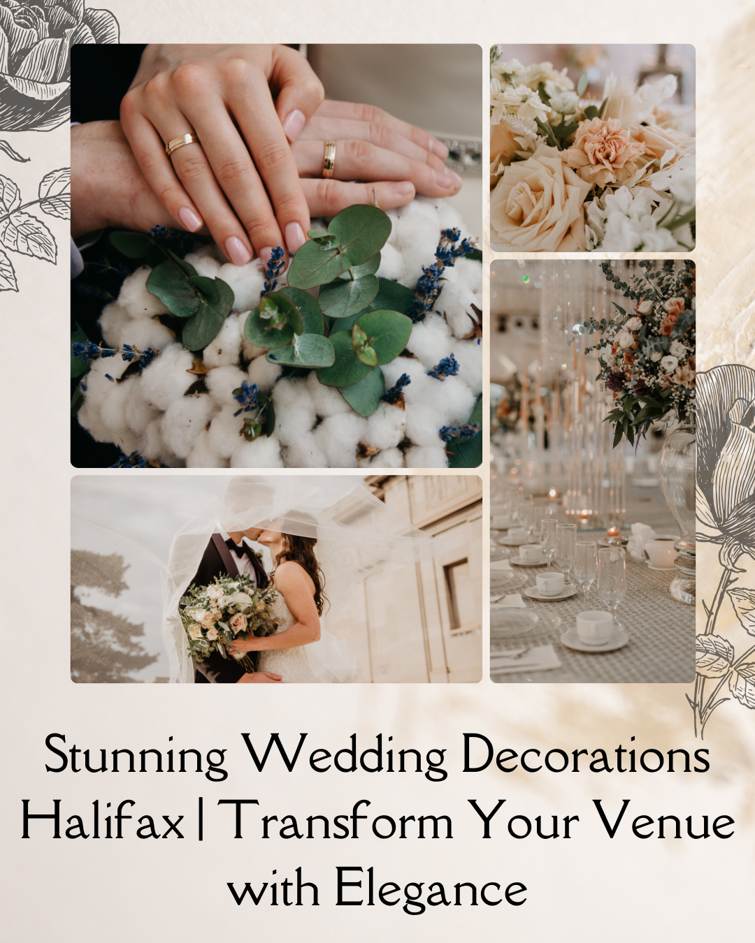 Transform your Halifax wedding venue with breathtaking decorations. Custom floral designs, elegant centerpieces, ambient lighting, and personalized décor elements create unforgettable atmospheres for your special day.