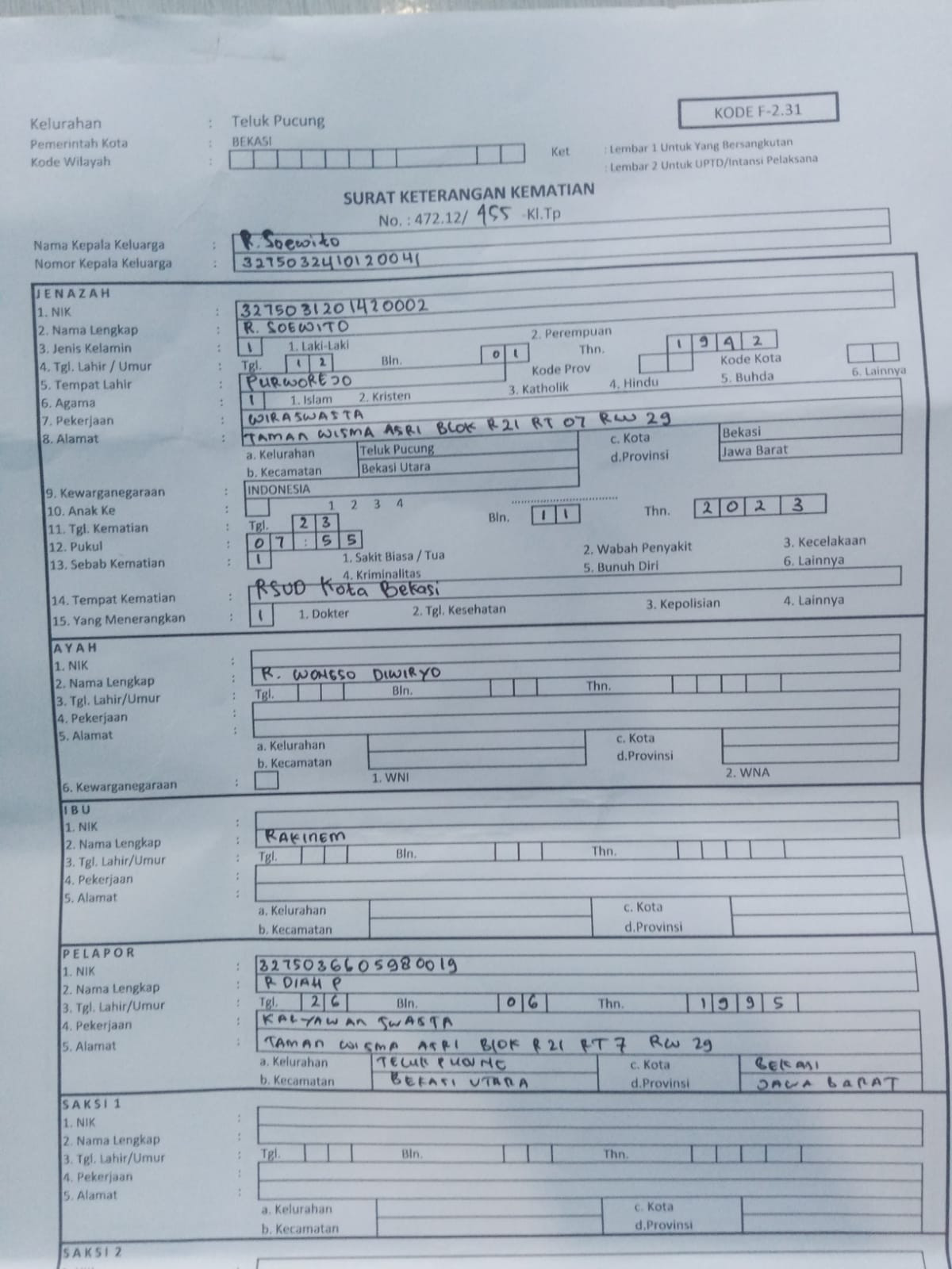 SURAT KEMATIAN ARYATAMA