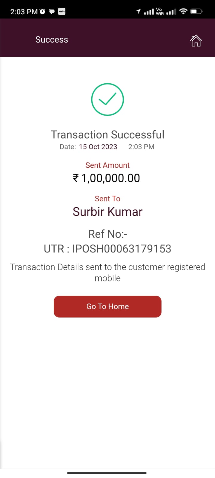 SURBIR 1,00,000 ON 15 OCT