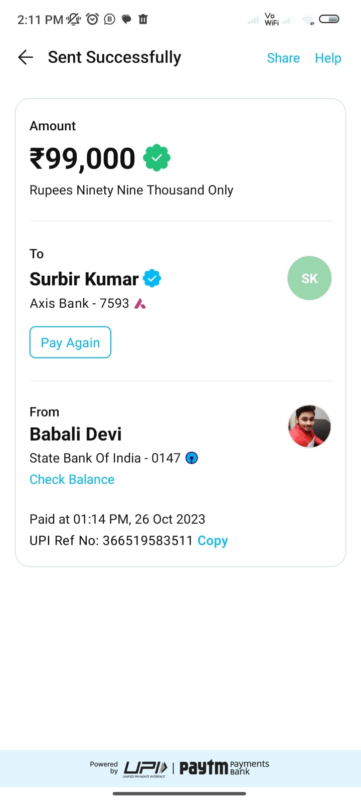 SURBIR 99,000 ON 26 OCT