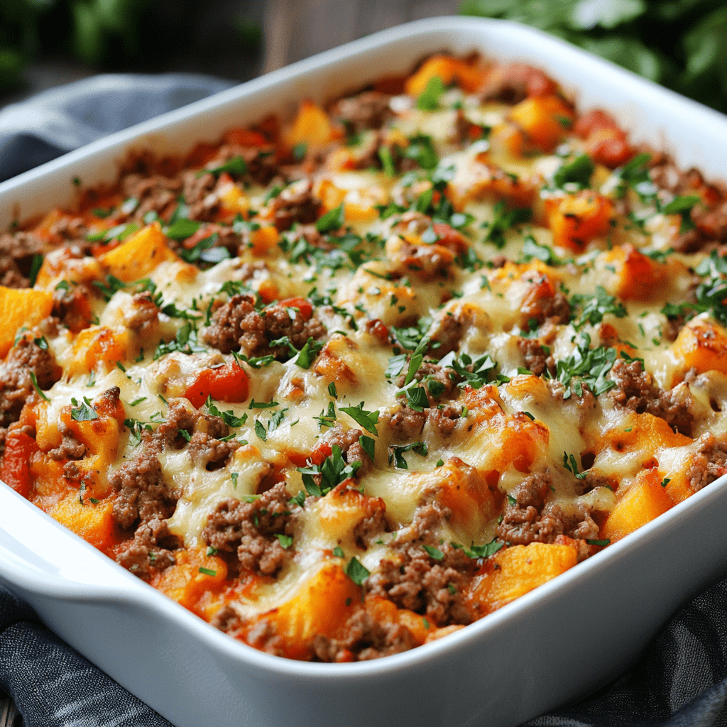 Suskartoffel Hackfleisch Auflauf mit Feta min