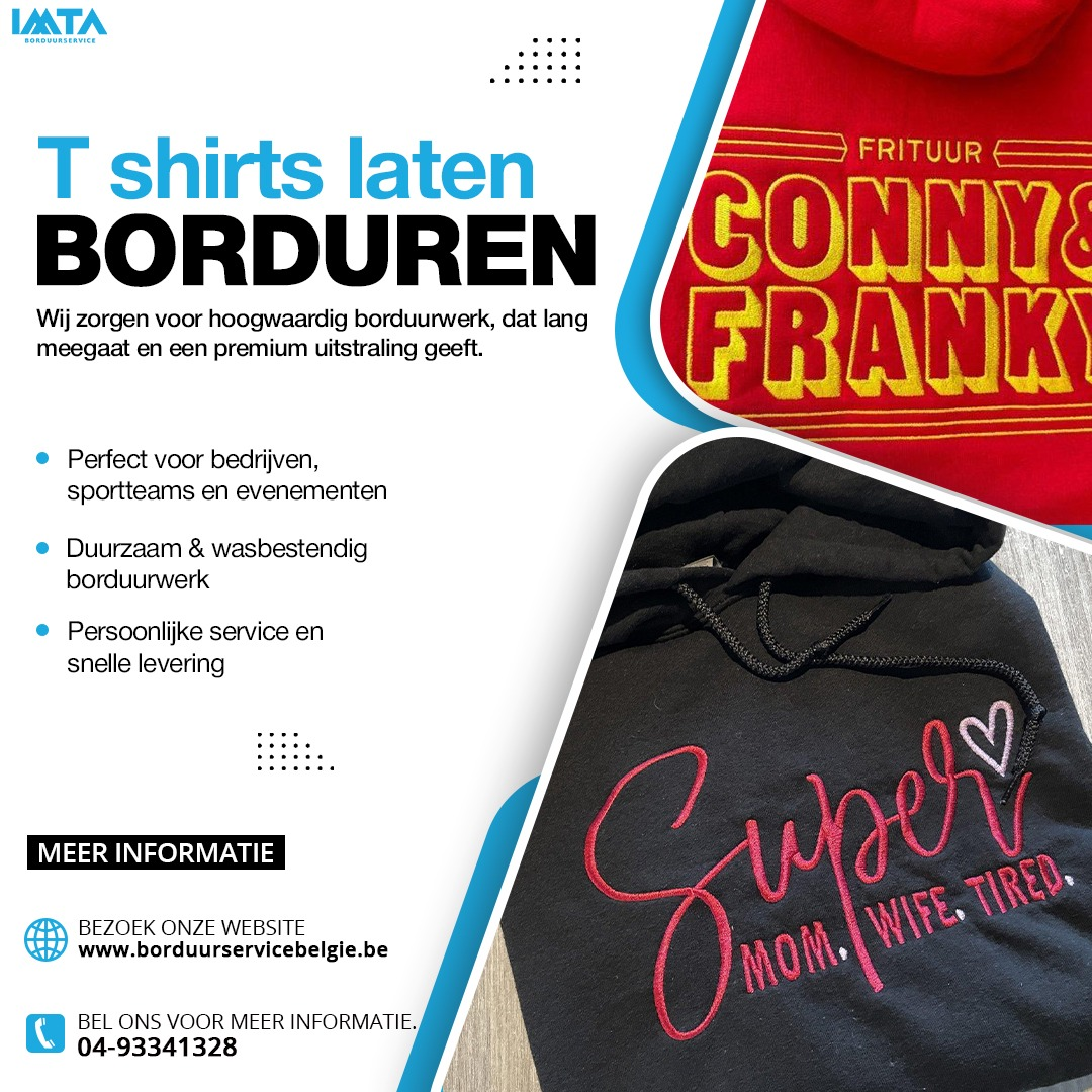 Bij Borduurservice België kun je eenvoudig je t-shirt laten borduren met logo’s, namen of unieke ontwerpen. Onze professionele afwerking staat garant voor kwaliteit, duurzaamheid en een verzorgde uitstraling. Geschikt voor bedrijven, teams of persoonlijke geschenken. Maak van elk t-shirt een stijlvol en onderscheidend kledingstuk dat lang meegaat.