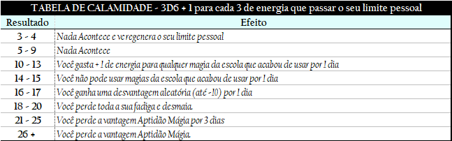 Tabela de Calamidade