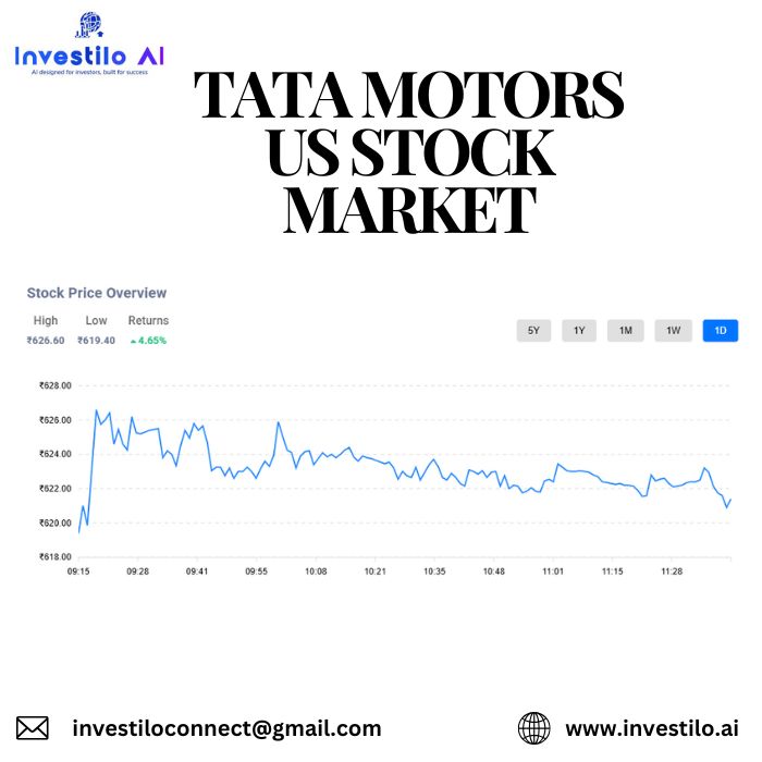 Explore the performance of Tata Motors in the US stock market with real-time price updates, latest news, and expert analysis. Track Tata Motors stock trends, financial data, and key insights for smart investing. Stay ahead with detailed reports and forecasts tailored for US investors. Whether you're watching NYSE or ADR shares, get the full picture at Investilo.ai. Follow Tata Motors in the US stock market to make informed investment decisions and understand its global impact on automotive stocks.