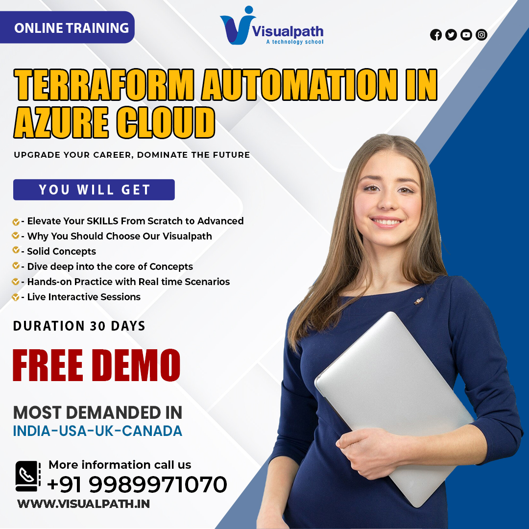 Visualpath offers The Best Terraform Automation in Azure Cloud Training by real-time experts. Our Terraform Course Online is available in Hyderabad and is provided to individuals globally in the USA, UK, Canada, Dubai, and Australia. Contact us at +91-9989971070.