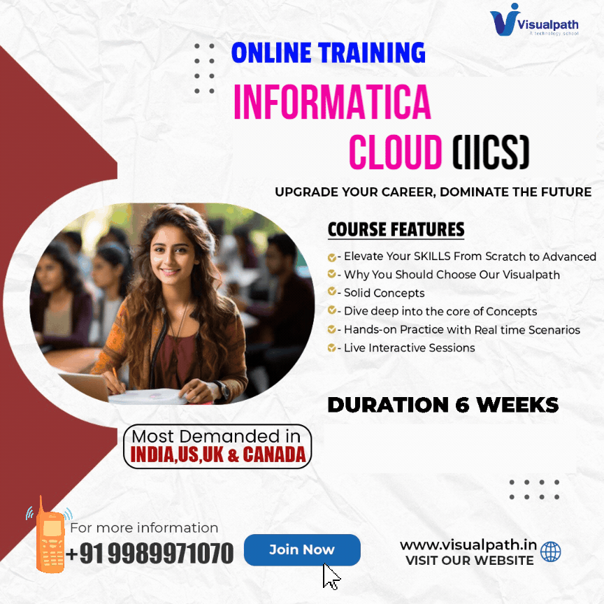 Visualpath is a Good educational institution in Hyderabad. We are providing online training for Informatica Cloud Training. Our comprehensive curriculum features dynamic live interactive sessions led by seasoned industry experts, complemented by hands-on projects. Contact us at +91-9989971070 for a free demo.