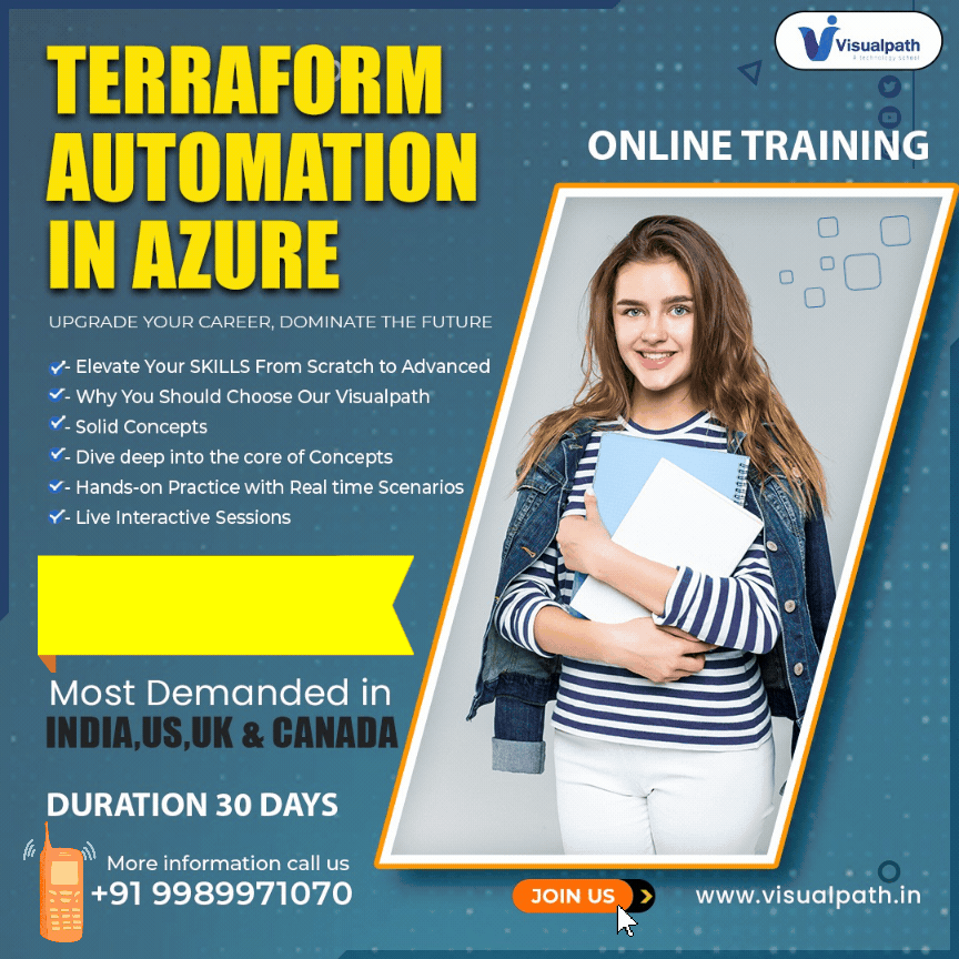 Visualpath provides top-quality Terraform Automation in Azure Cloud Training conducted by real-time experts. Our training is available worldwide, and we offer daily recordings and presentations for reference. Call us at +91-9989971070 for a free demo.