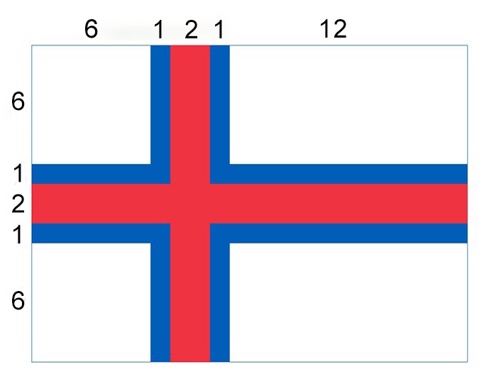 The Faroese flag is a blue-fancated red cross on a white field. The colours used in the flag are blue, red and white. The size of the Faroese flag is 8:11. The flag of the Faroe Islands was adopted in 1940. The first use of the current design was in 1940. The last change to the current Faroese flag design was in 1940.