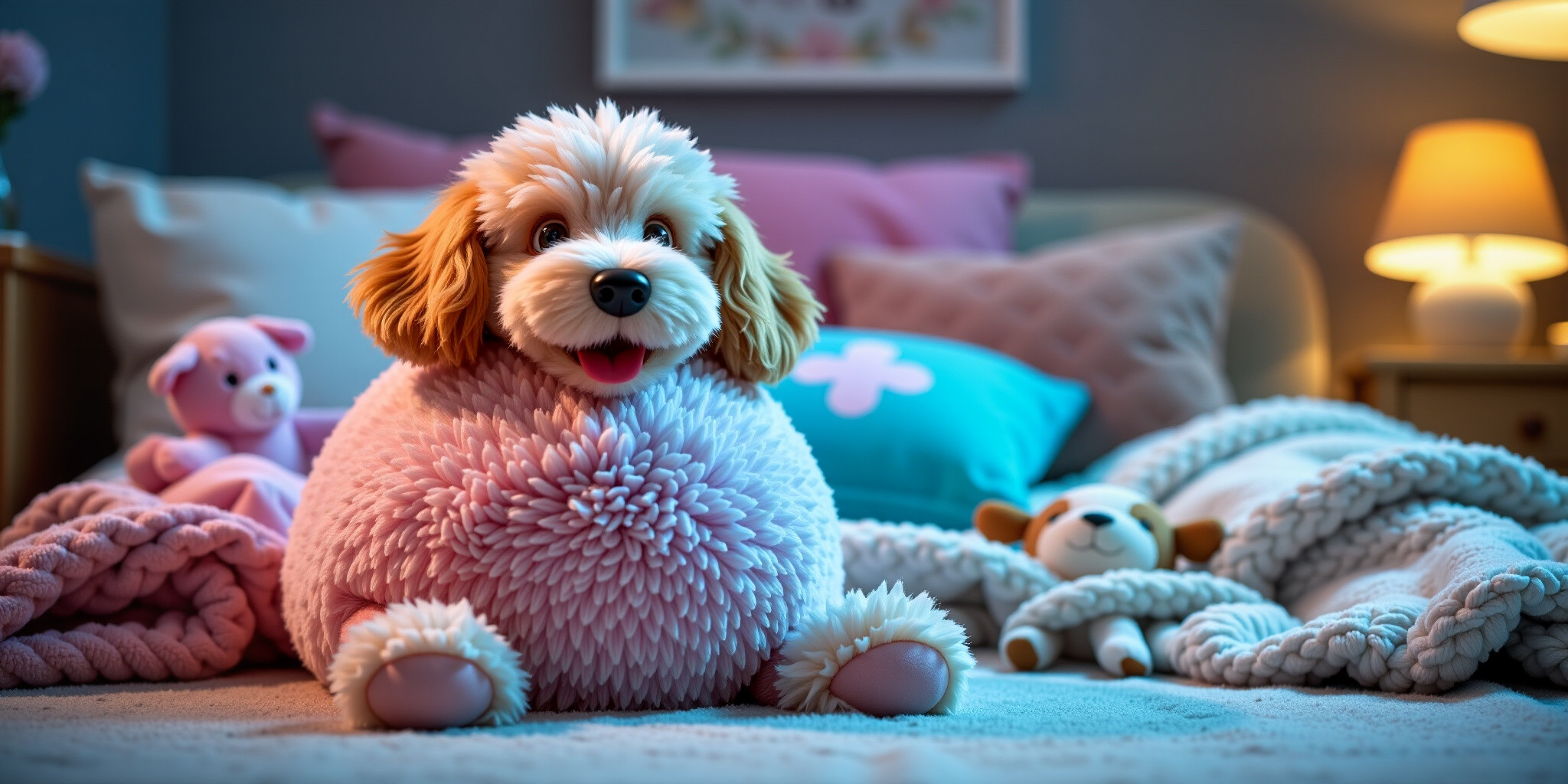 The image features Big Belly Bob BBB a plush labradoodle with an absurdly large spherical belly depi