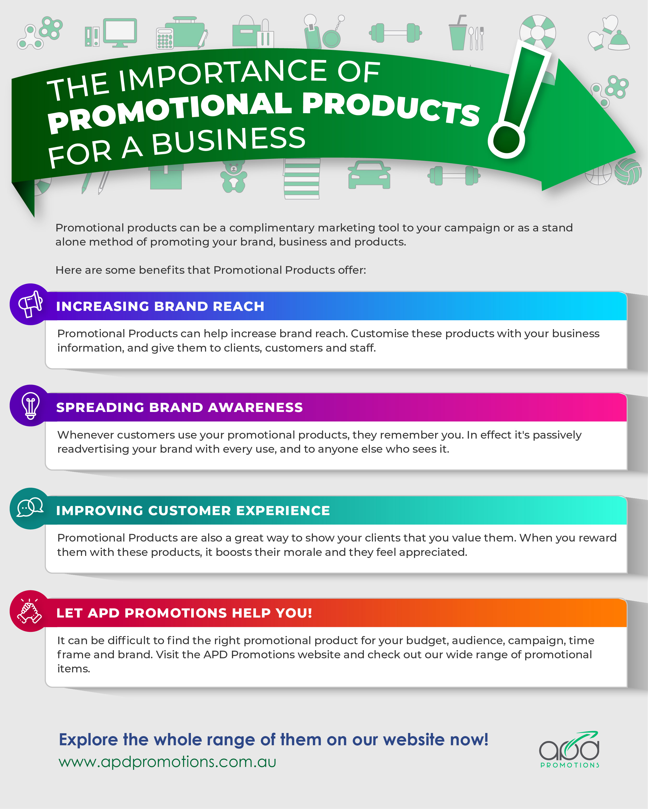 Promotional products can be a complimentary marketing tool to your campaign or as a stand alone method of promoting your brand, business and products. Discover the advantages of using promotional products with this infographic.