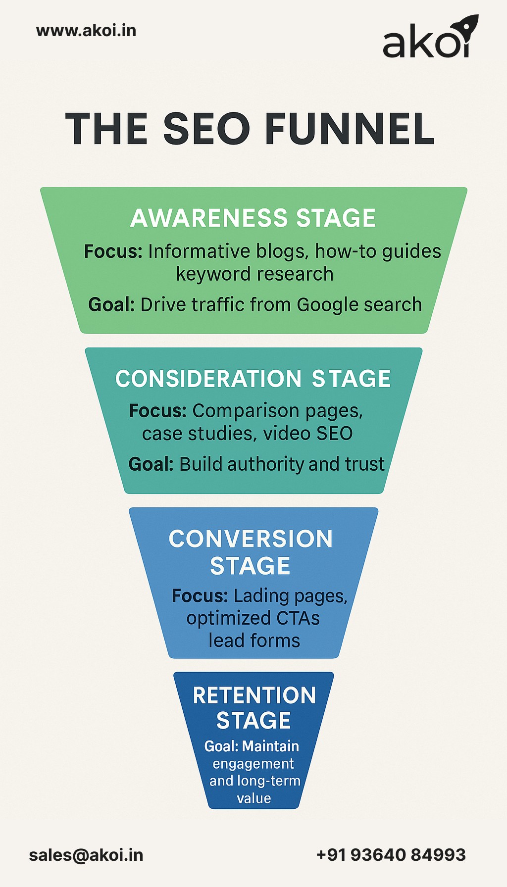 At AKOI, our tailored SEO strategies ensure your brand stays visible and valuable at every stage of the funnel, driving measurable business results.