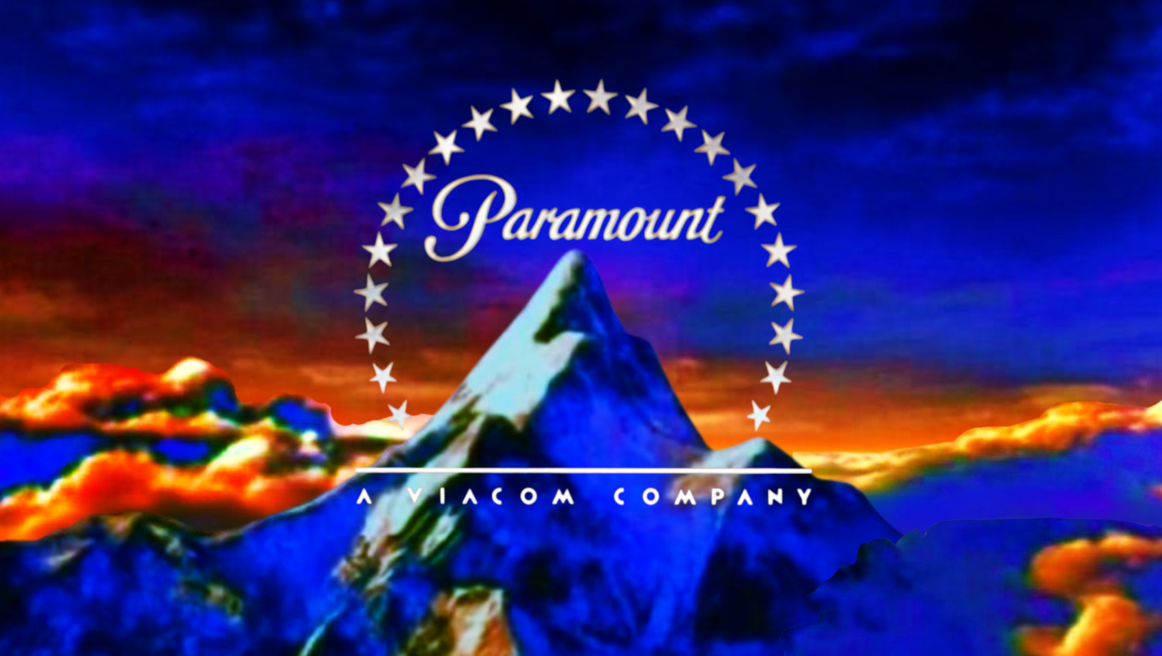 Logo: We see a majestic shot of a large amount of clouds, high over the earth, in space. In the distance, comet-like objects descend from the sky and as they zoom towards us, we see that they are the trademark Paramount stars, shooting towards us. The shot appears to "shimmer" a bit and then we see that we've been watching a reflection all along; the stars have been reflected through the familiar "Paramount" script. It too descends through the clouds above the stars, until we see a familiar mountain coming into view, now on a majestic sunrise-like background and surrounded by clouds. The stars zoom in below the script logo, which is now a silver color with a golden border, twisting and encircling the mountain. The script logo assumes its position above the mountain peak as the logo is completely formed. The Viacom byline then fades in under the logo.
