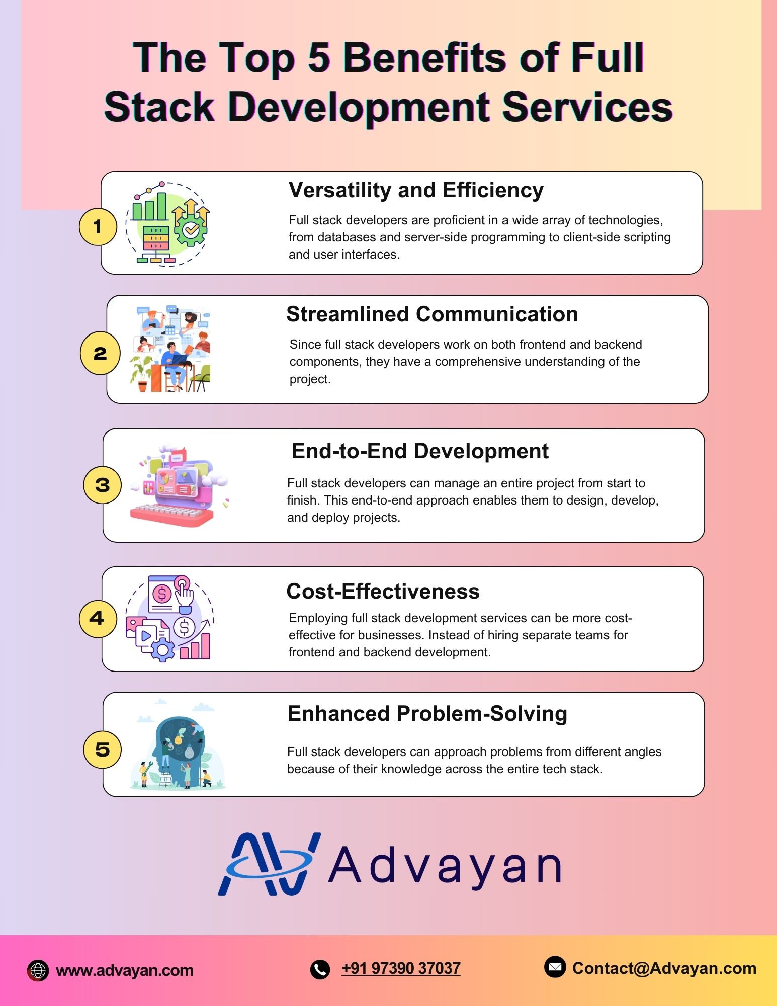 Advayan stands out for its commitment to excellence and innovation in Full Stack Development Services. When you choose us, you’re partnering with a trusted team that prioritizes your success and delivers exceptional results. Hire Full Stack Developers from Advayan and take your business to the next level. Let’s work together to create transformative digital experiences for your users.